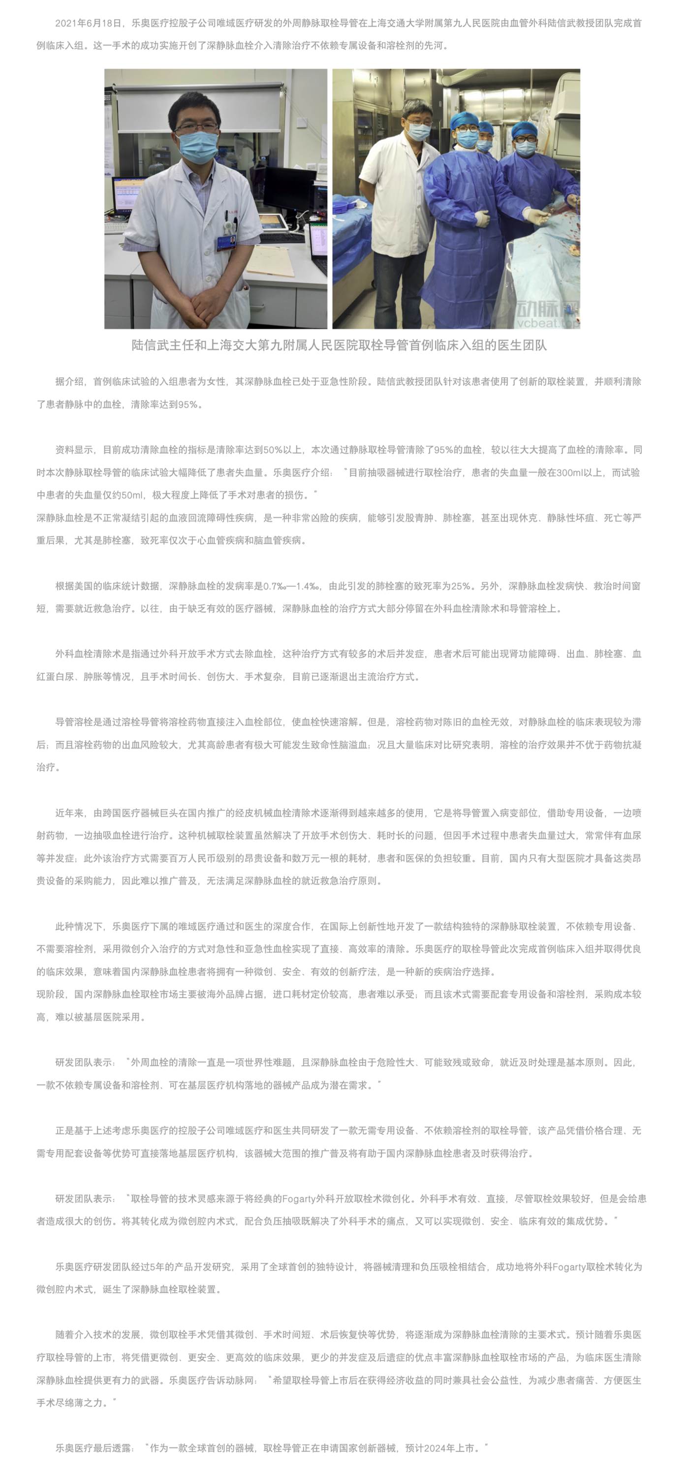 外周深靜脈血栓治療的重大突破,樂奧醫(yī)療靜脈取栓導(dǎo)管完成首例臨床入組